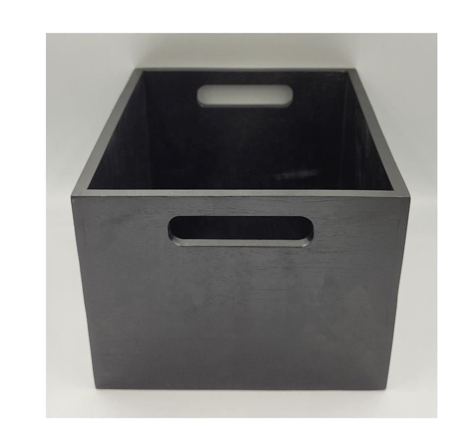 Black Solid Wood Crate Box With Handwoven Rattan Panels and Polished Rope Handles for Christmas Cake Fruit or Beverage Storage