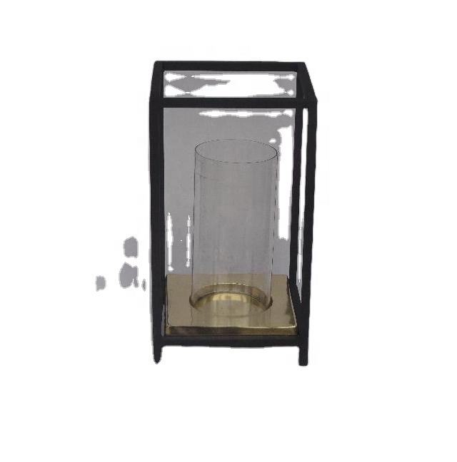 Black Square Hurricane Candle Holder With Antiques Brass for Two Candles Home Decorations