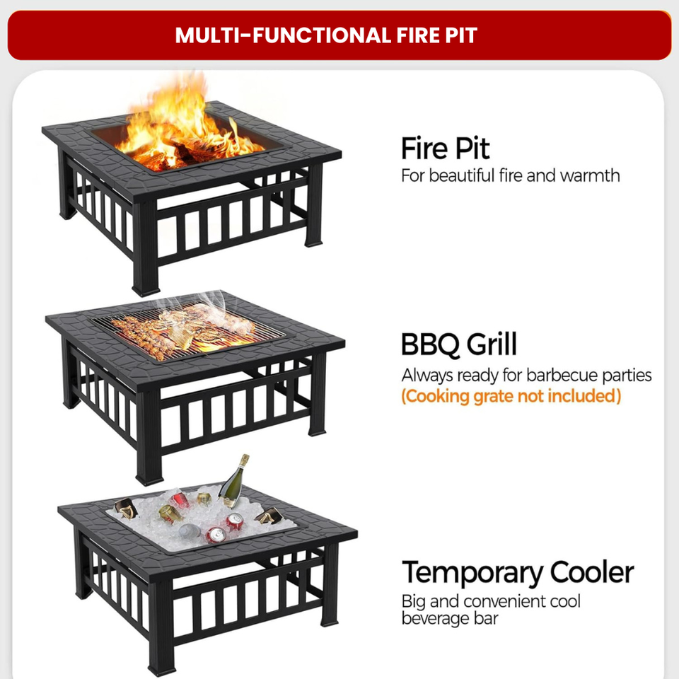 Square Multi-Functional Fire Pit Brazier Outdoor Table with Fire