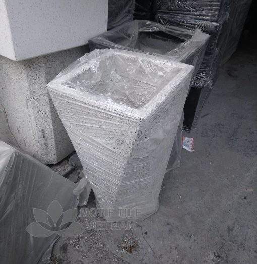 Black Square Polished Cement Pot Bevel Edge Eco-Friendly Durable Minimalist Home & Garden