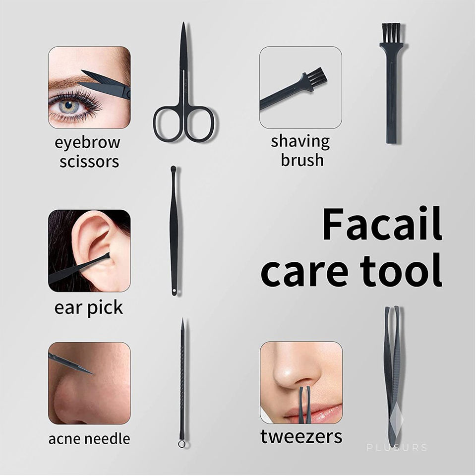 Black Stainless Steel 7-in-1 Nail Clipper Sharp Manicure Pedicure Set for Men and Women Boxed Nail Grooming Kit