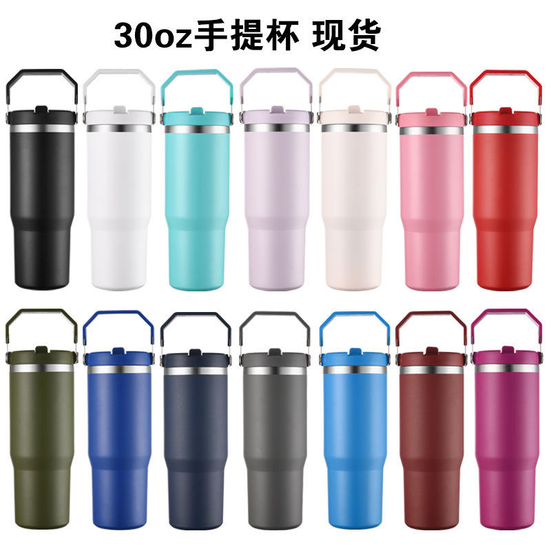 Black Stainless Steel Tumbler 30oz With Handle Insulated Travel Mug For Car And Outdoor Use