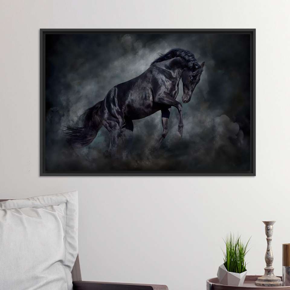 Black Stallion Canvas Art: Dramatic Equine Print for Rustic Decor,BLACK FRAMED CANVAS