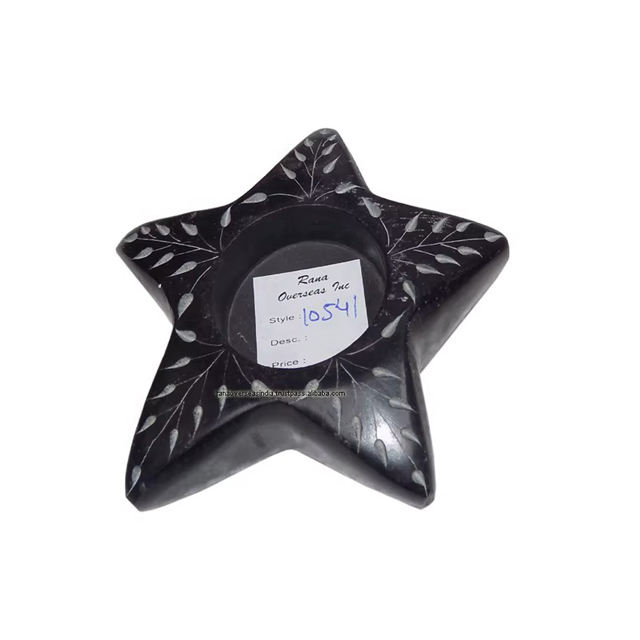 Black Star Shaped Soapstone Tea Light Candle Holder With Leaf Inlay Design for Wedding Decor