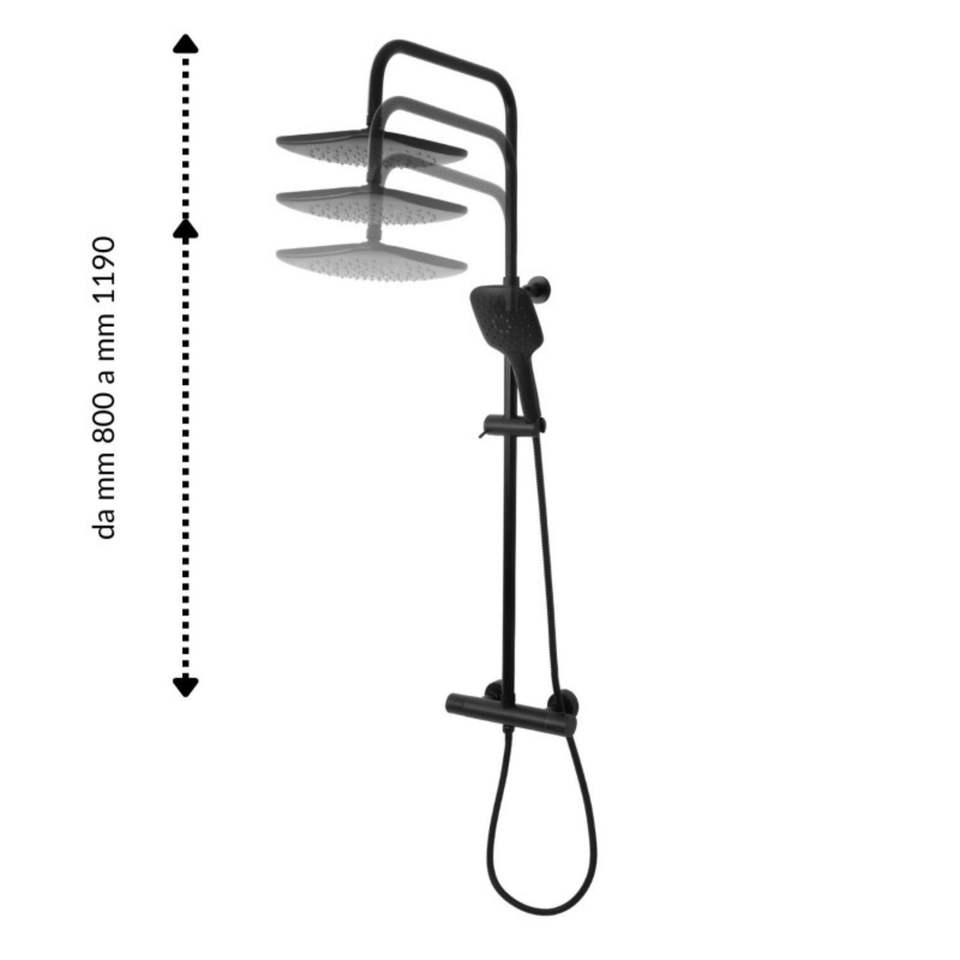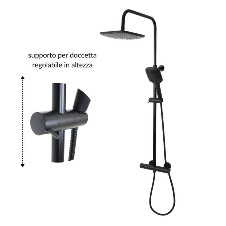 Black Thermostatic Shower Column with 2 Functions and Square Hand Shower Pack of 1 Bathroom Set