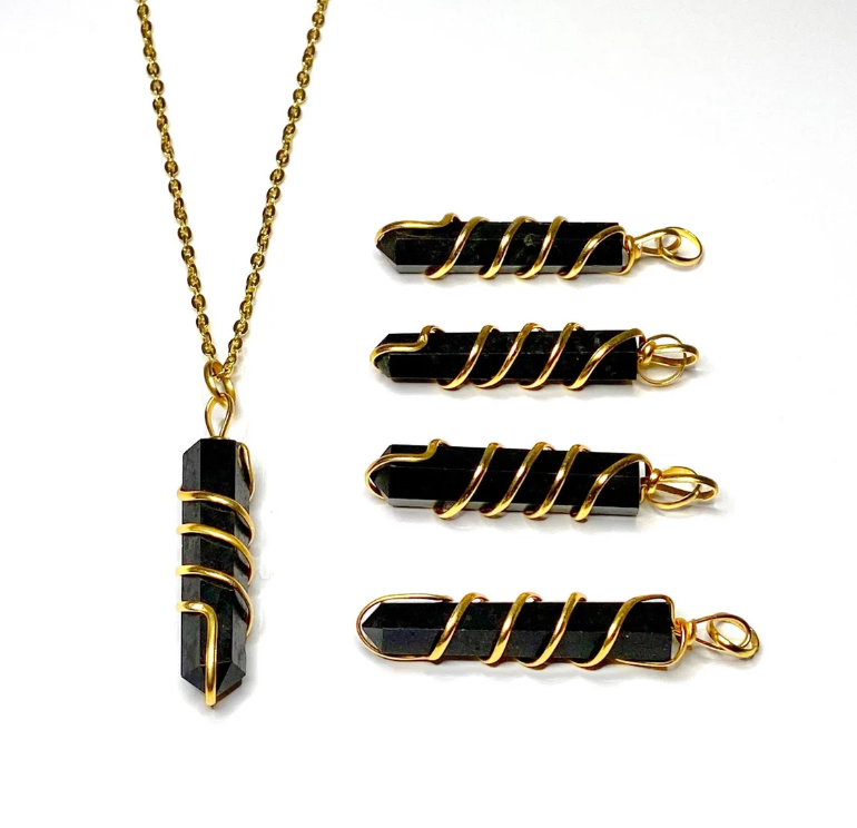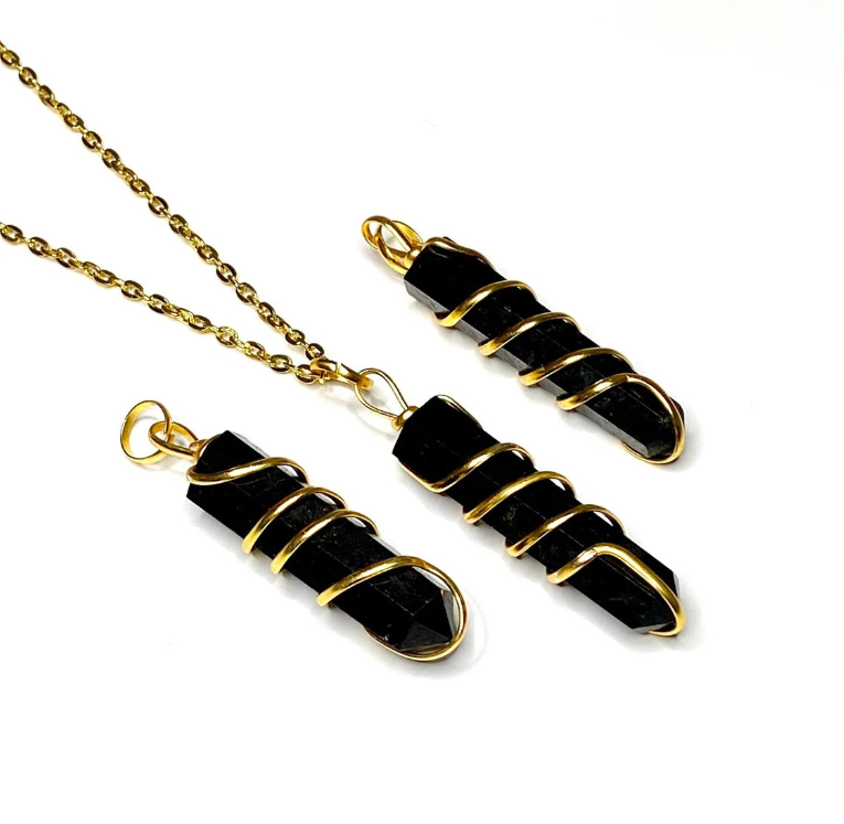 Black Tourmaline Pencil Pendant with Leather Cord Grounding & Protection High Quality Reiki Healing Stone Black Tourmaline