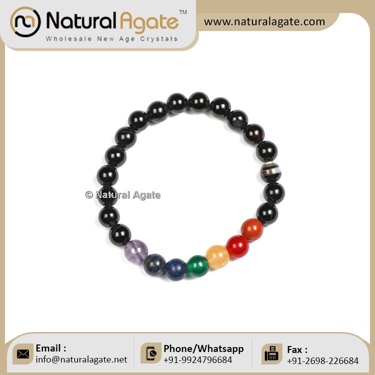 Black Tourmaline with Seven Chakra Gemstone Bracelets Now Available At Best Wholesale Price