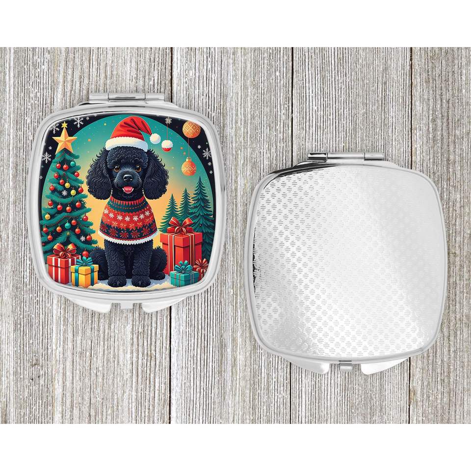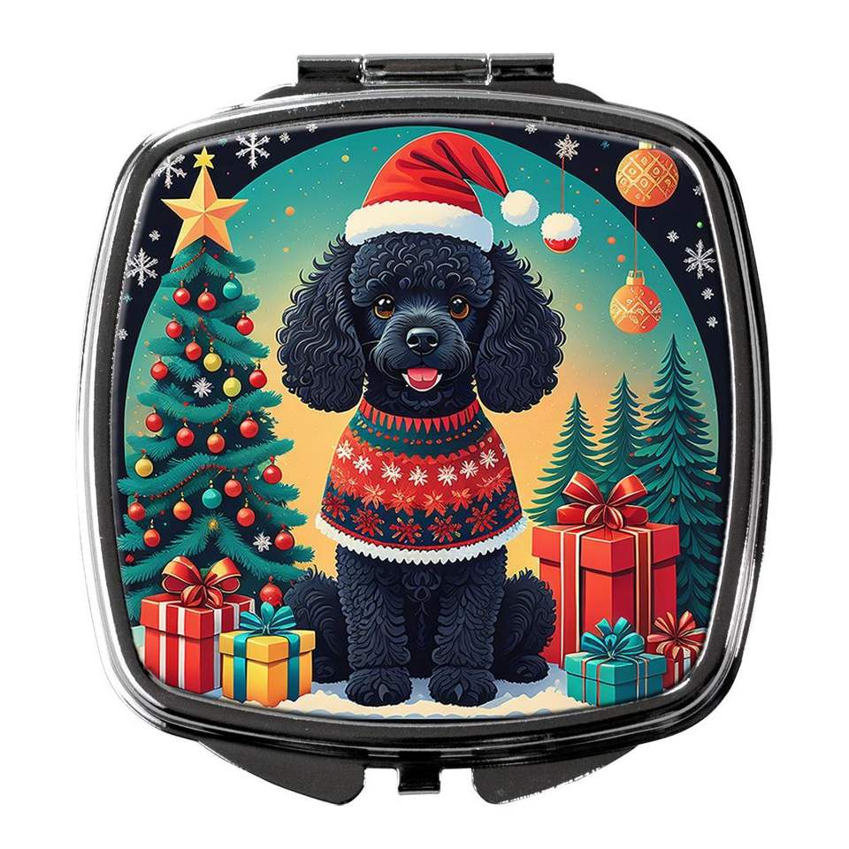 Black Toy Poodle Christmas Compact Travel Makeup Mirror Foldable Handheld Design Gift for Women and Girls