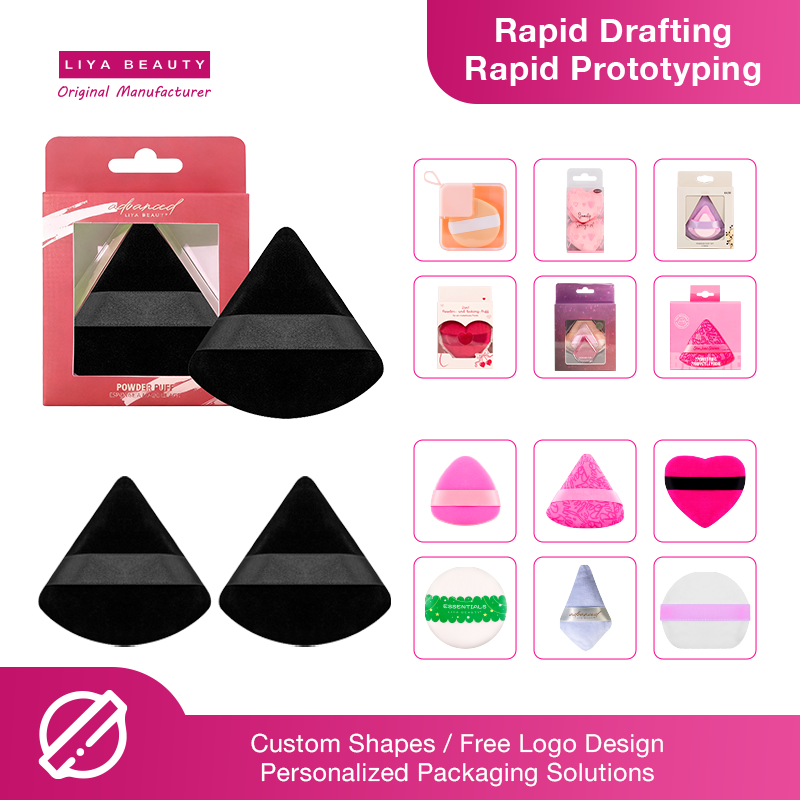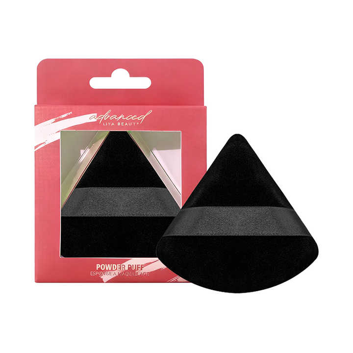 Black Triangle Cotton Makeup Powder Puff Professional Custom Logo Wholesale for Foundation Setting with Beauty Packaging Box