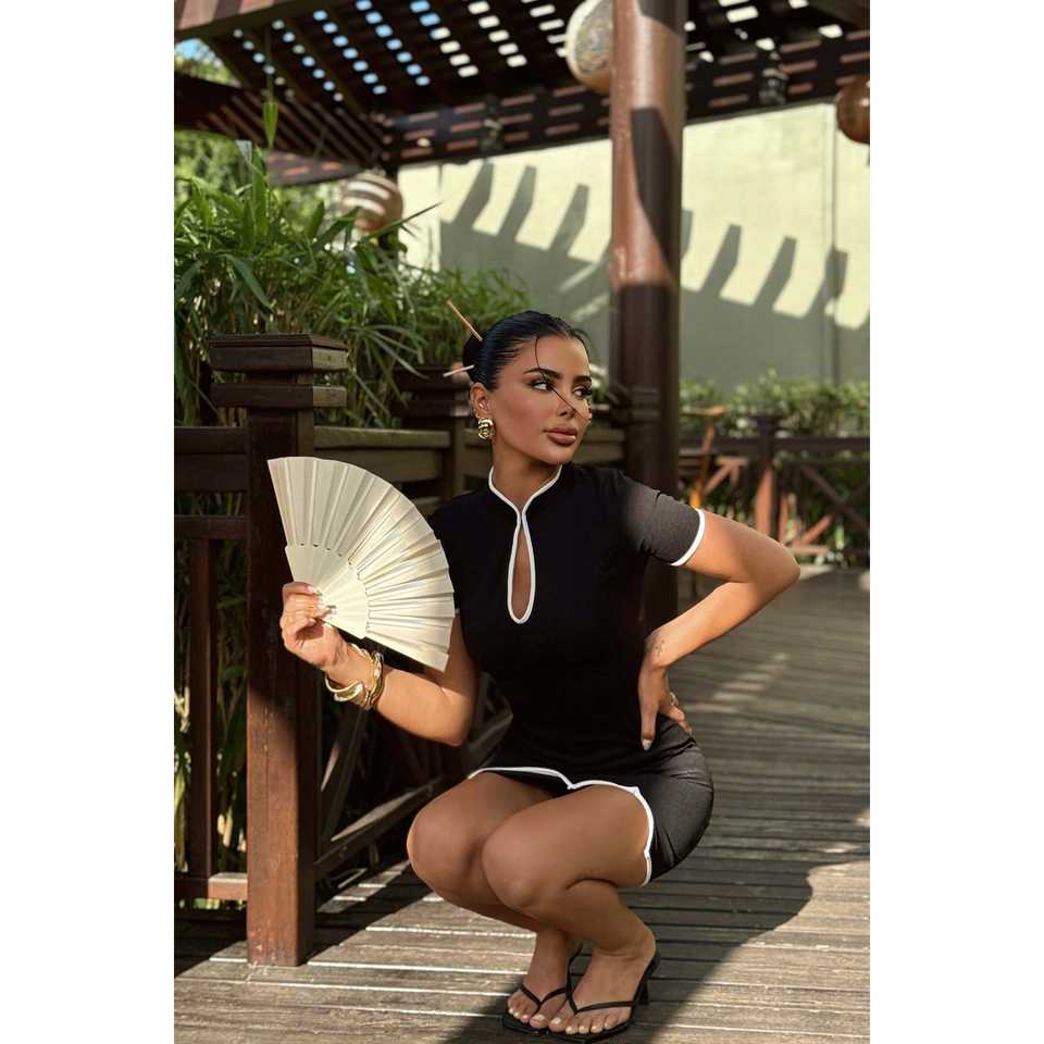 Black Trimmed Floral Print Dress with Square Collar Puff Sleeves Modest Elegant Day Work Party Kaftan Custom Logo Cheap Price