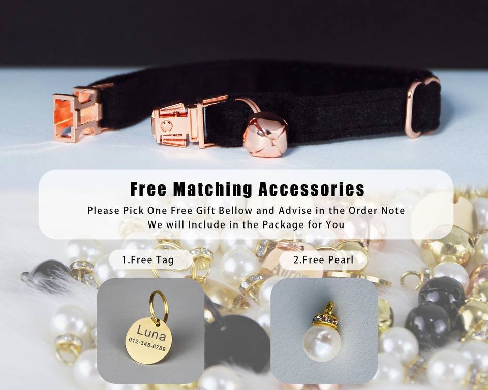 Black Veet Personalized Cat & Small Dog Collar Bow Tie Leash Set,Custom Engraved Kitten Puppy Name Tag,Free Gold Bell, Male Pet