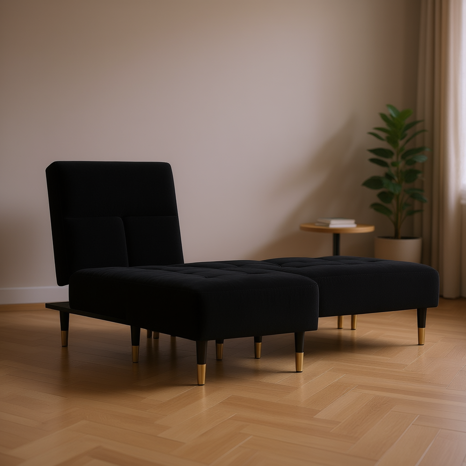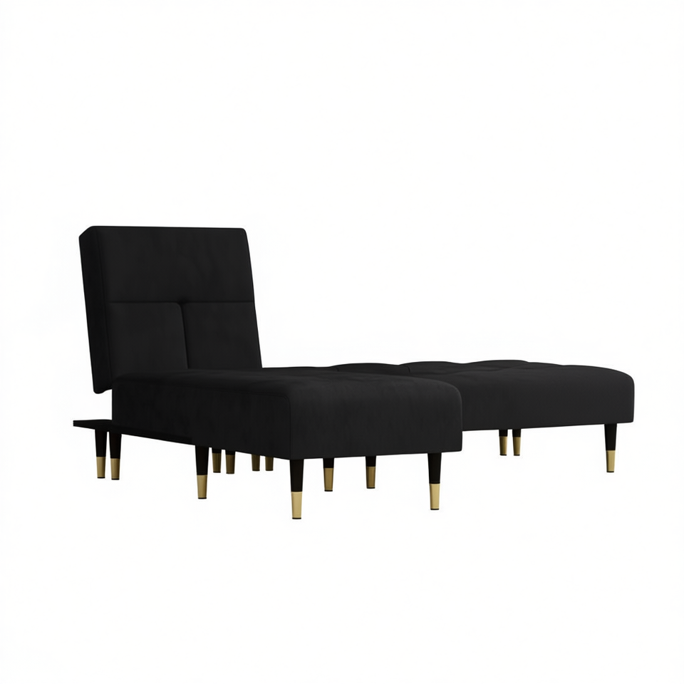 Black Velvet Chaise Lounge Tapered Legs Tufted Midcentury Modern Living Room Furniture