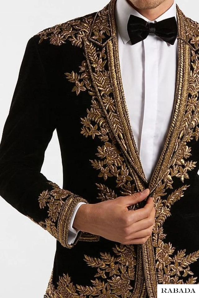 Black Velvet Designer Hand Embroidered Tuxedo, Traditional Groom Black Jacket, Wedding Jodhpuri Indian Jacket, Mens Suit