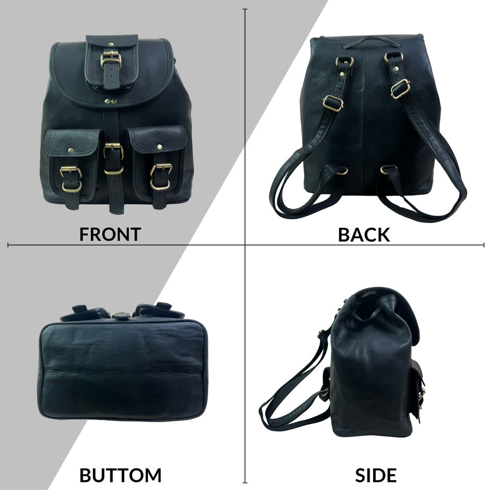 Black Vintage Genuine Leather Backpack for Men & Women Handmade Brown Travel Rucksack with Multi Pockets