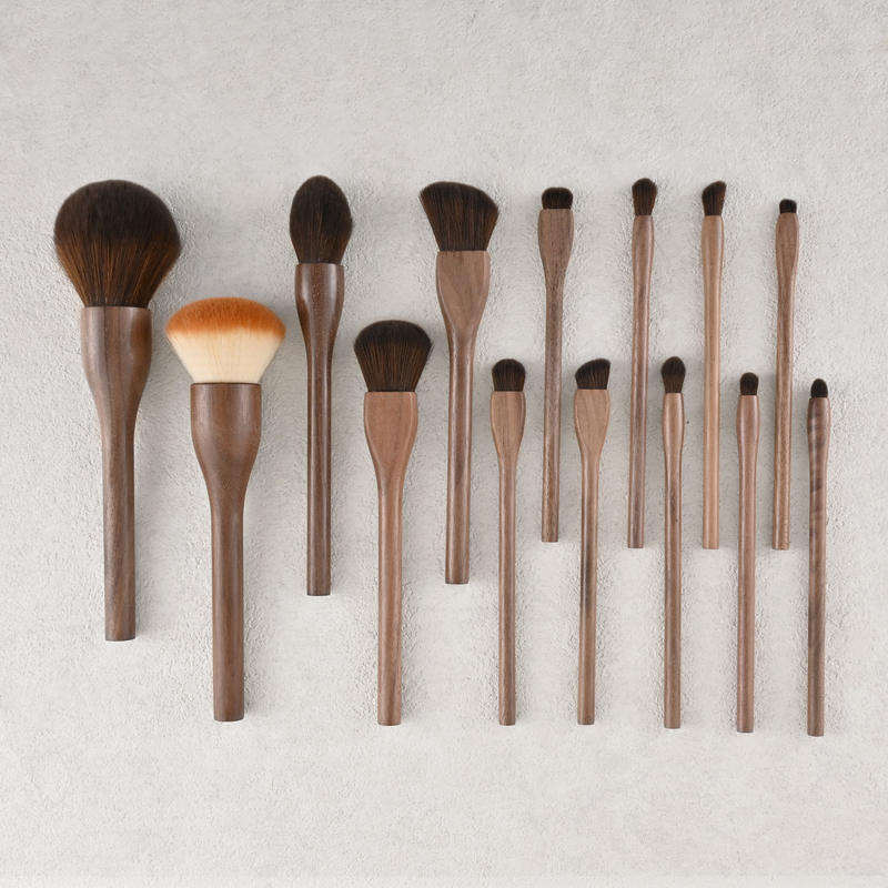 Black Walnut Wood Makeup Brush Set 14-Piece Flat Shape Foundation Blush Setting Powder Brushes Free Sample