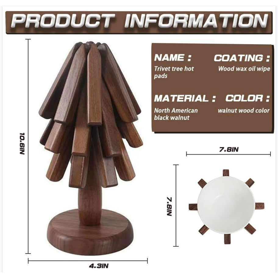 Black Walnut Wooden Trivet for Hot Dishes Set of 3 Natural Foldable Tree Trivet Trivets for Hot Dishes Stand Heat Resistant Mat
