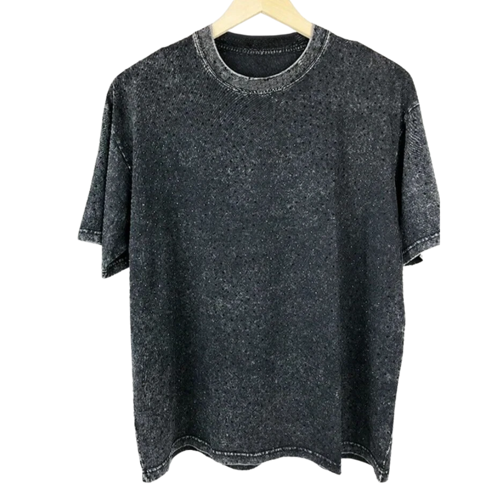 Black Washed Rhinestone Dot T Shirt Unisex Oversize Luxury Fashion Crystal Studded Tee Premium Quality Custom Logo OEM ODM Bulk