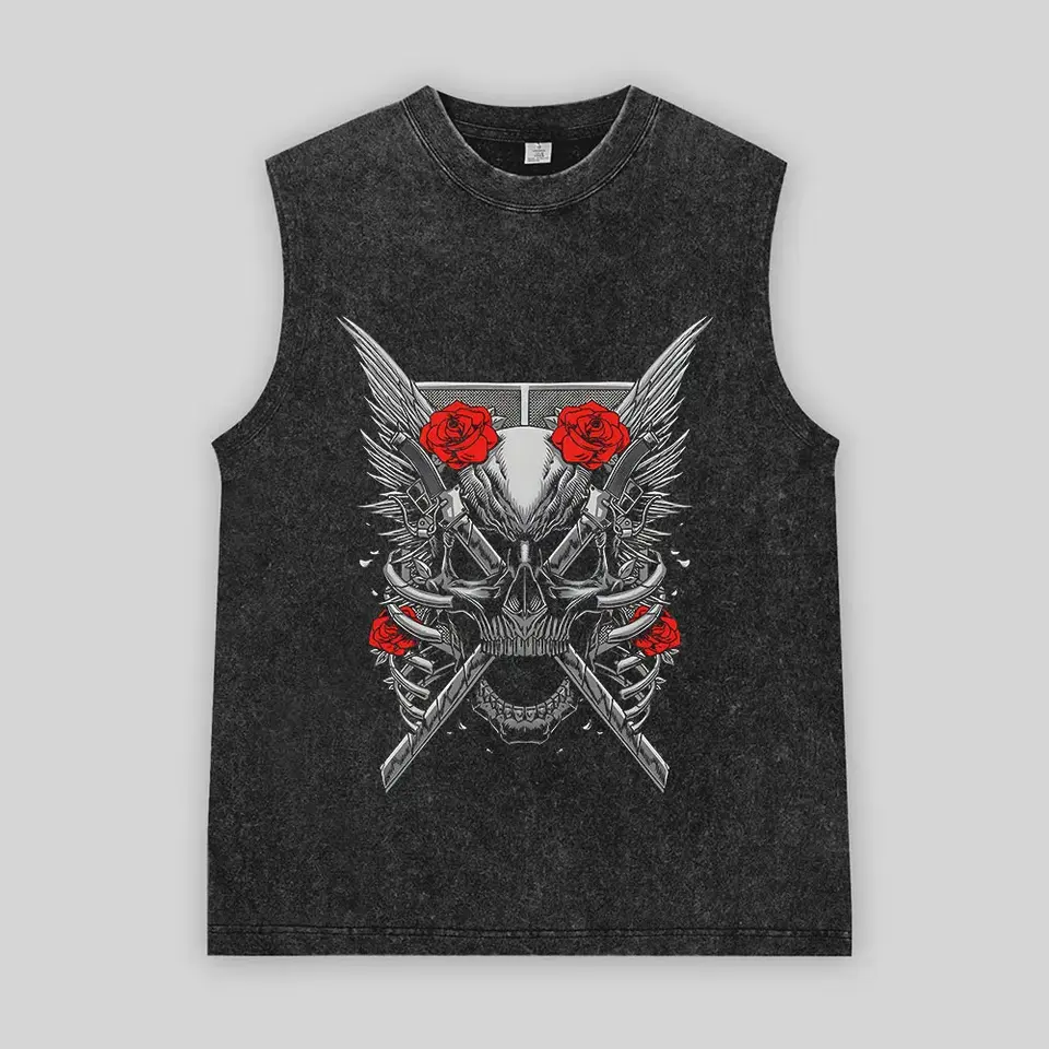 Black Washed Vest 100% Cotton Digital Screen Printing Gym Clothing Cut Off Tank Top Sleeveless T-shirt Custom Tank Top Men