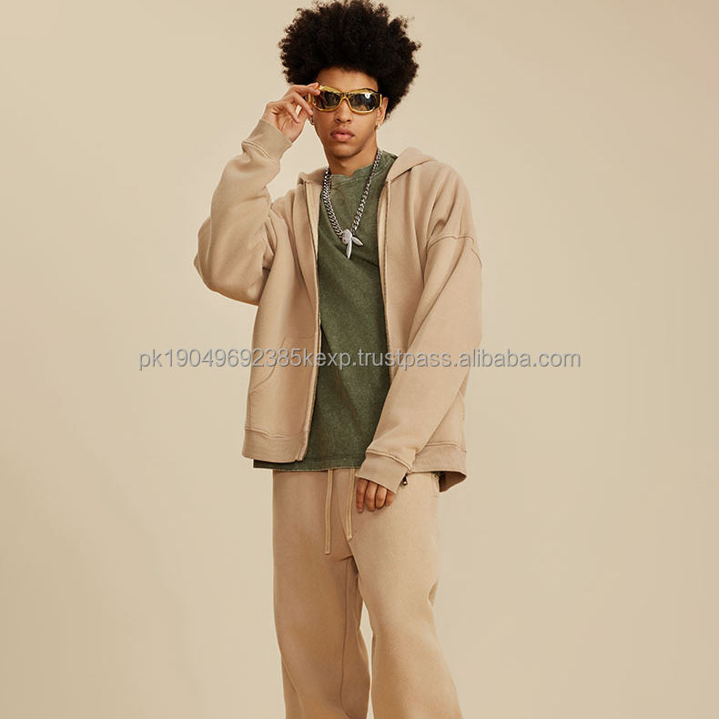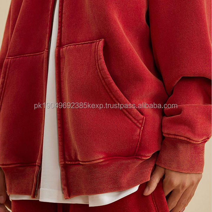 Black Washed Vintage Distressed Acid Wash Hooded Zipper Hoodie Unisex Custom DIY Pattern Lined Fleece by Manufacturer