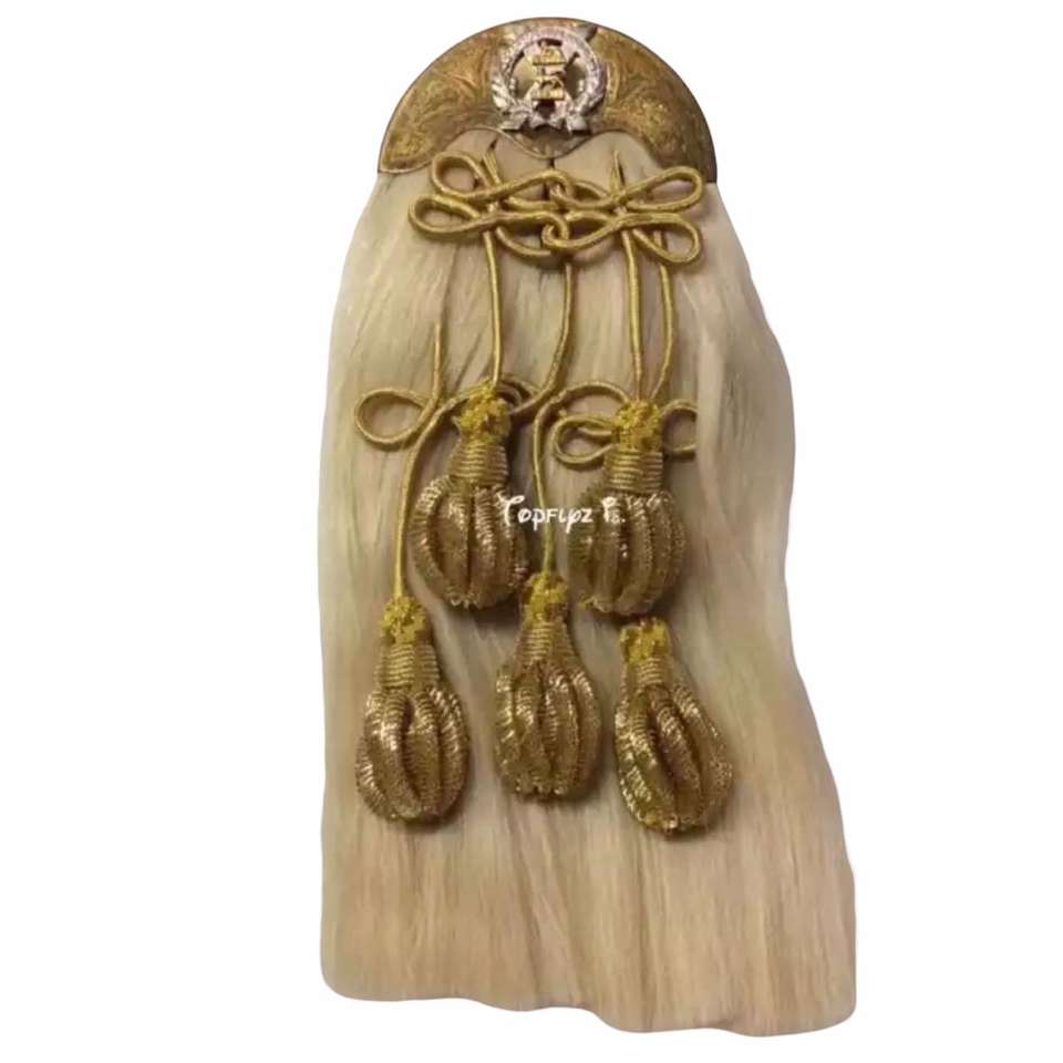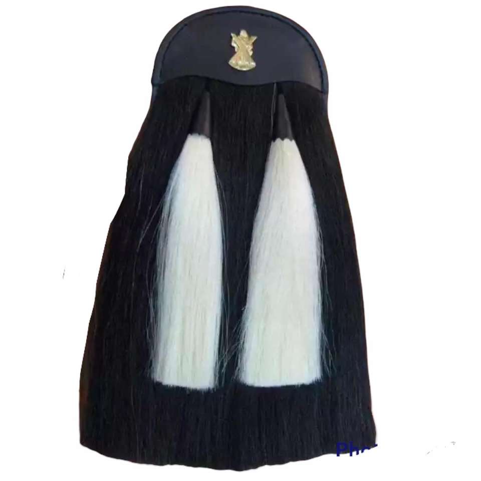 Black Watch Real Horsehair Kilt Sporran, a traditional Scottish Highland dress accessory features a gold bullion hair sporran