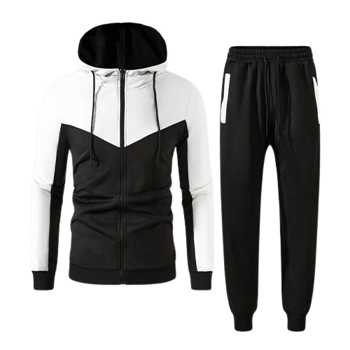 Black White Colorblock Zip Up Hoodie and Jogger Pants Two Piece Tracksuit Set Casual Streetwear Outfit with Drawstring Waist