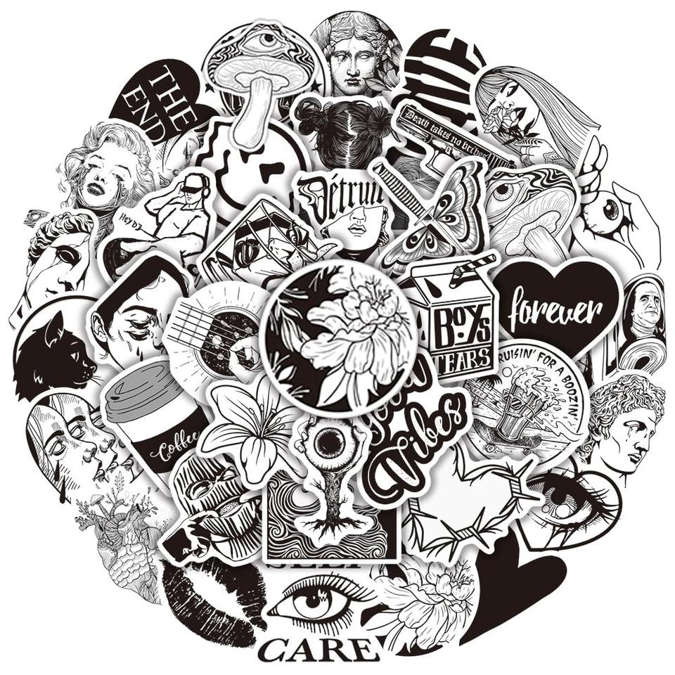 Black White Custom High Quality UV Printed Cartoon Die Cut Vinyl Stickers | 100pcs Eco-Friendly Waterproof Removable Decorative