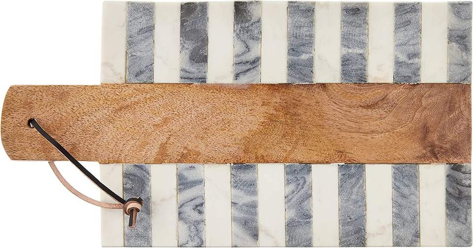 Black White Marble Inlay Board White Marble and Acacia Wooden Cheese Board for Meats Breads Handmade by Adiba Home Decor