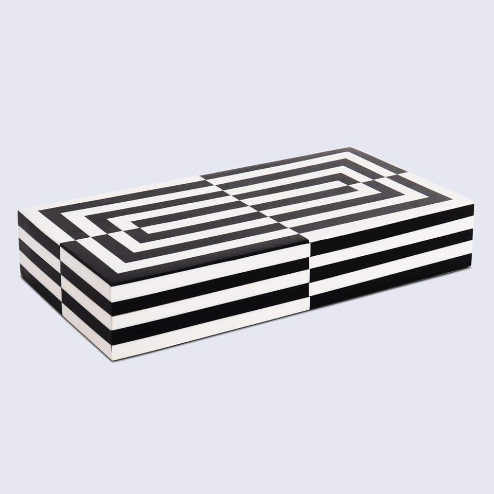 Black White Puzzle Slide Pattern Resin Inlay MDF Decorative Box Handmade Organizer for Jewelry and Modern Home Decor