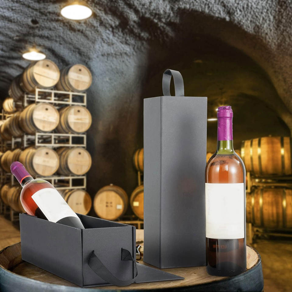 Black Wine Gift Box with Magnetic Closure Collapsible Wine Bottle Box Liquor Champagne Spirits Wedding Party Gift Wrapping