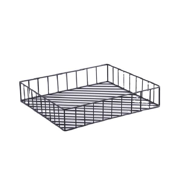 Black Wire Pastry Basket 2 Deep Iron Powder Coated Wire Tray Luxury Design Handmade Wire Tray for Table Decor