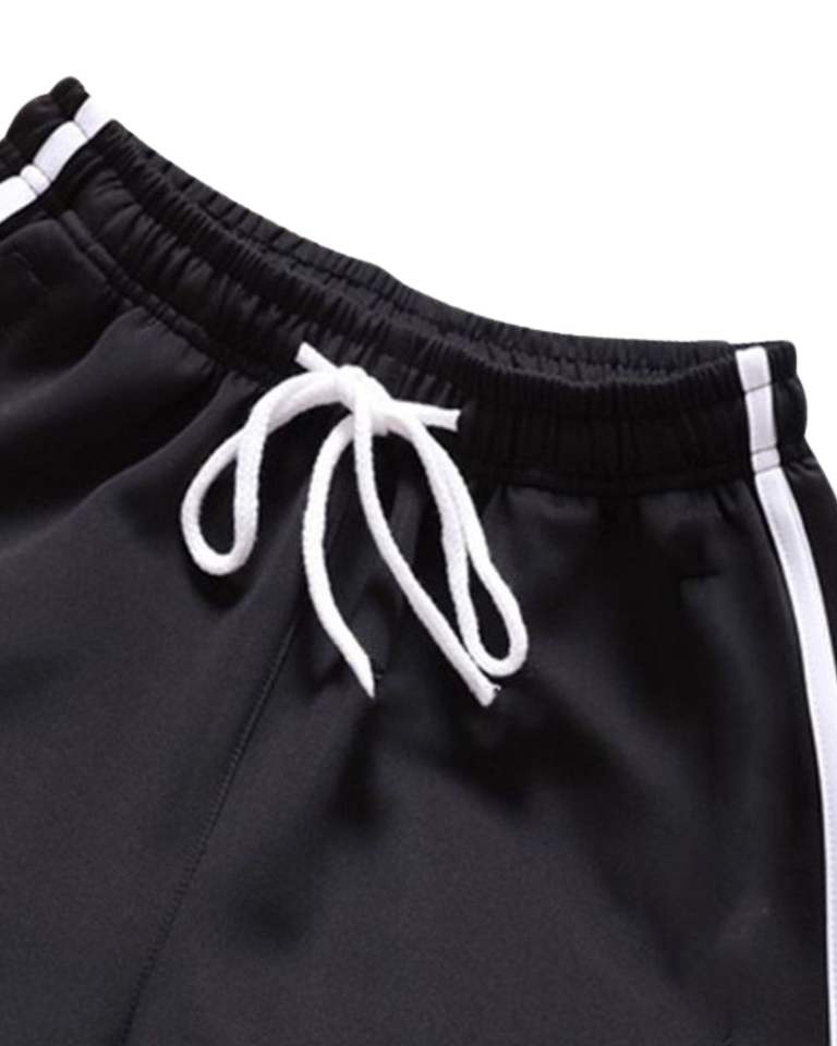 Black Women Sports Shorts With White Piping Casual Running Gym Shorts Soft Fabric Elastic Waist Comfortable Summer Activewear