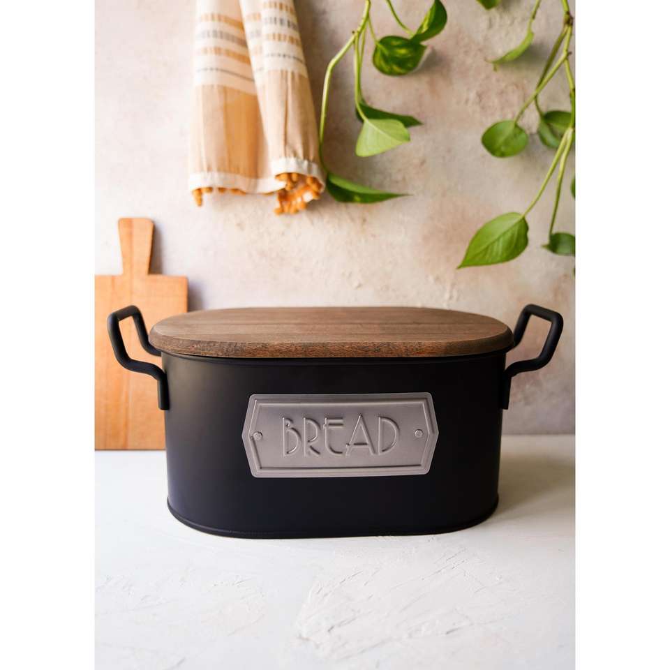 Black Wooden Bread Box with Lid MGL0027 for Food Storage & Container