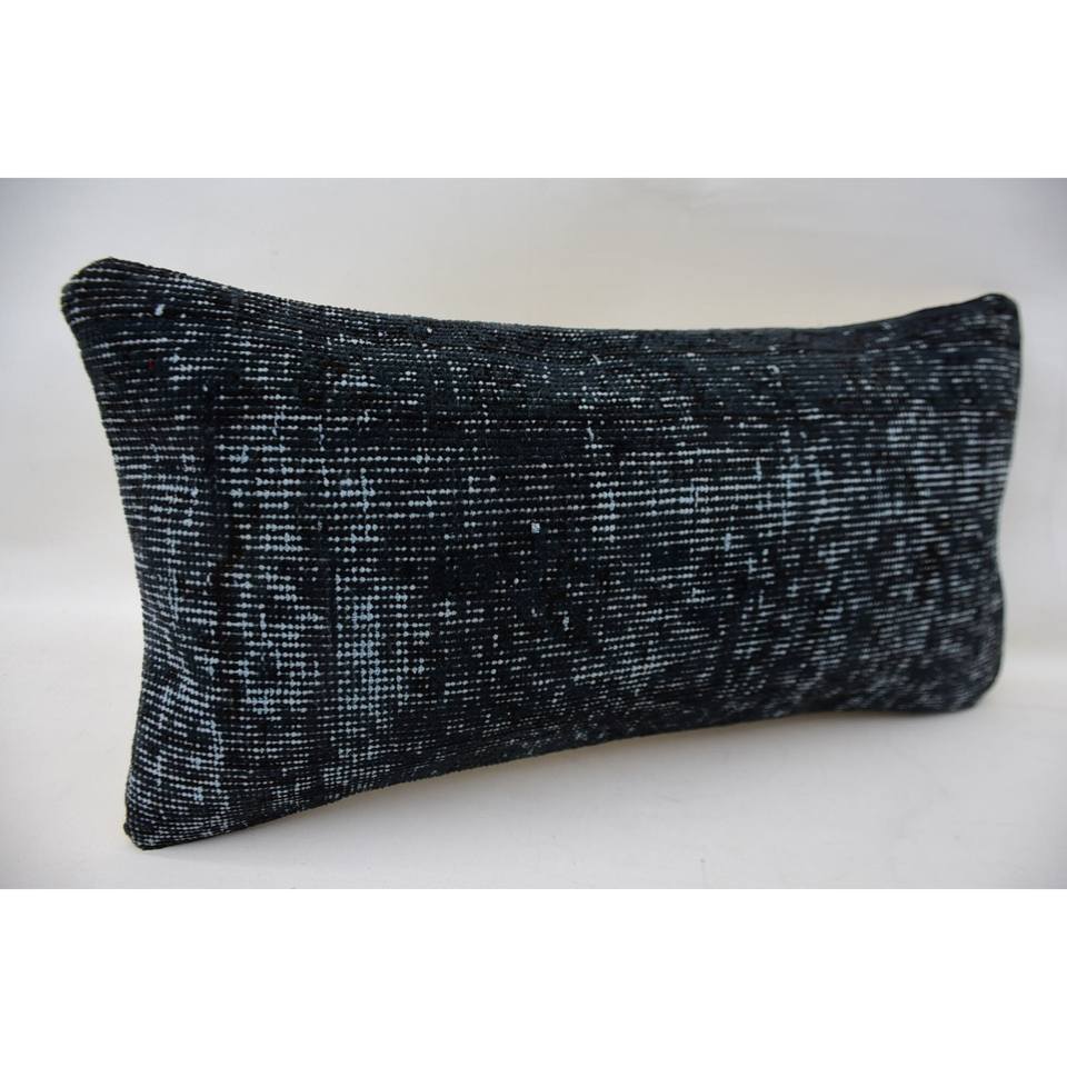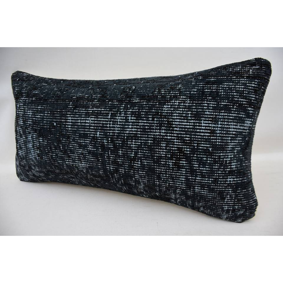 Black Wool Kantha Patchwork Pillow 12x24 Inch Woven Throw Pillow Vintage Embroidered Print Portable for Bedding Floor Christmas