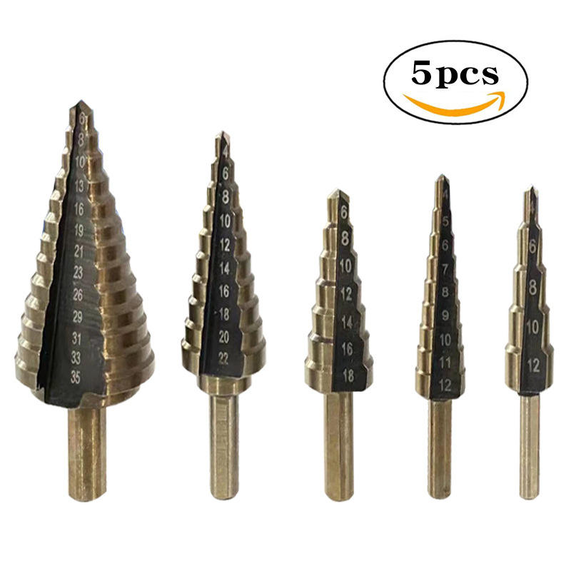 Black Yellow Pagoda Electric Drill Bit Set Metric Hole Opener Tool with Triangular Shank Multipurpose Step Drill Bit