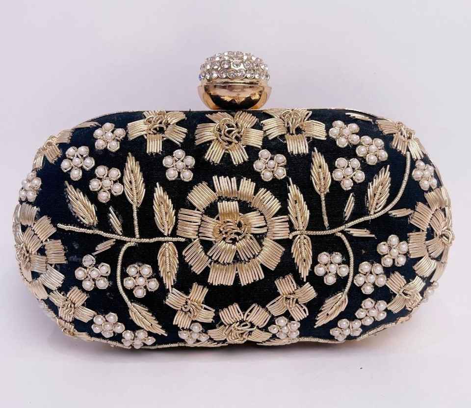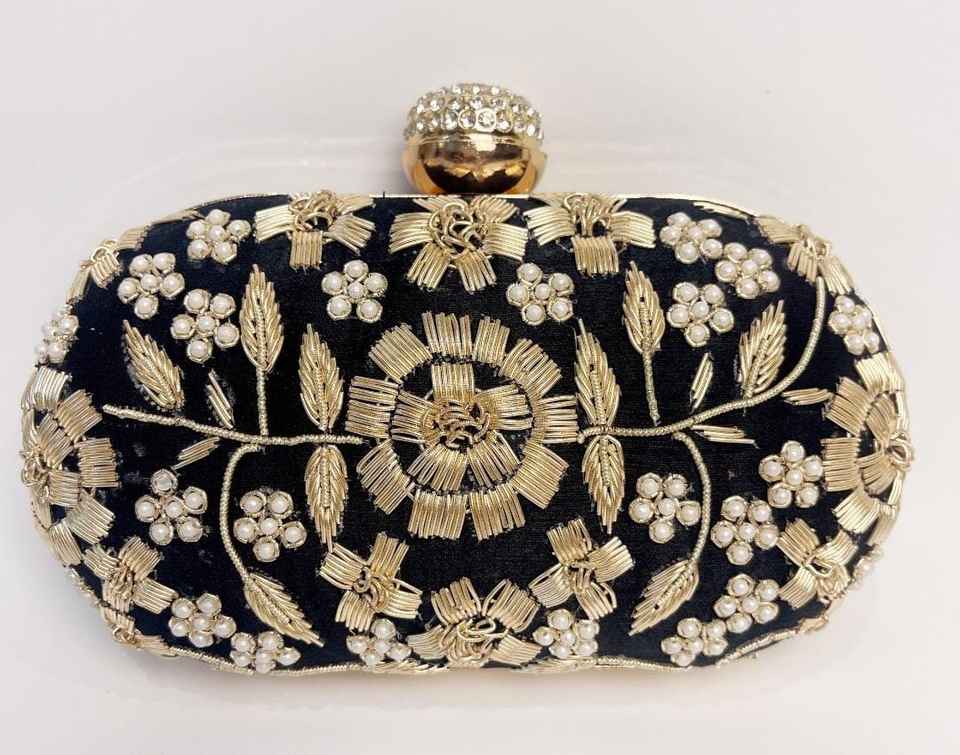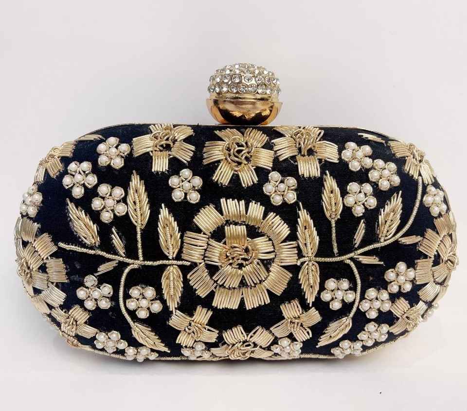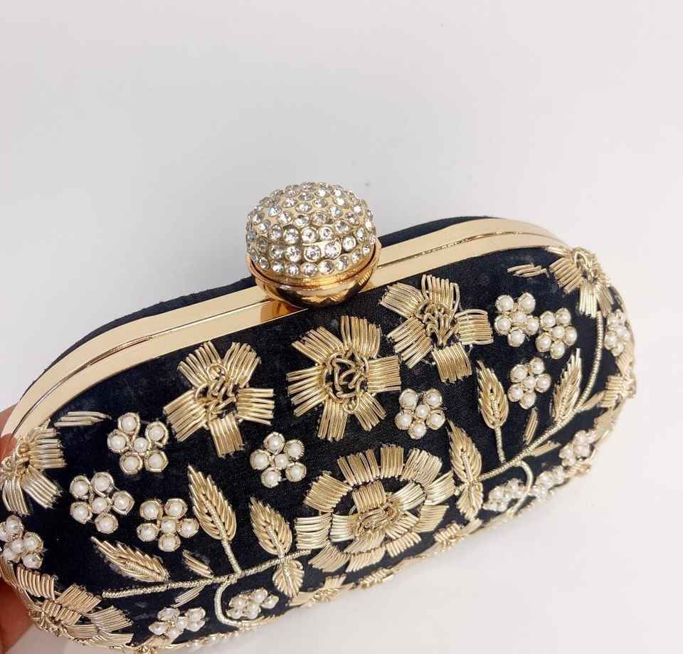 Black Zardozi Handwork Clutch Embroidered Clutch for Wedding