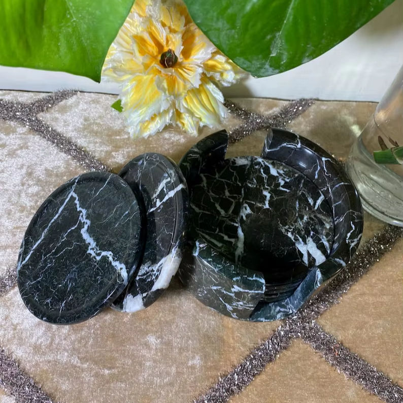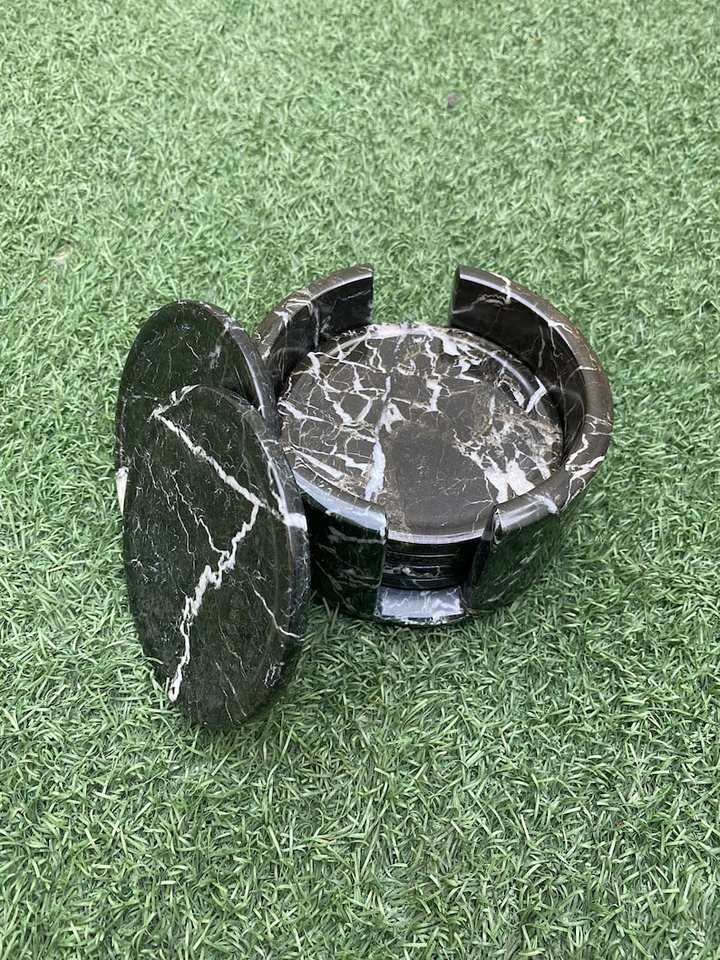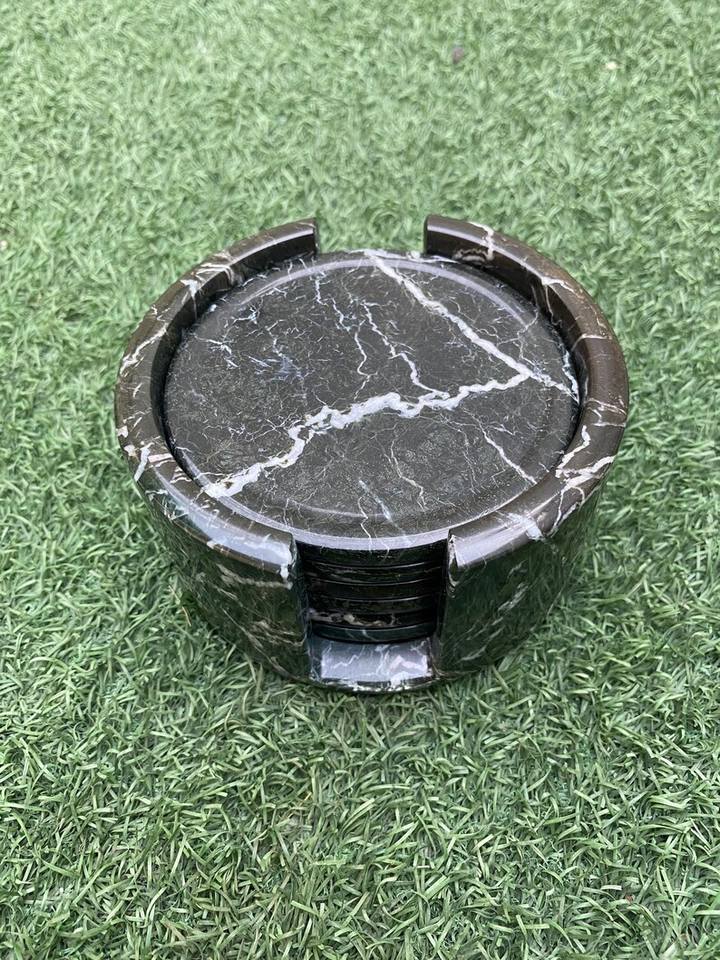 Black Zebra Stone Marble Coasters Set Of Six With Holder Luxury Drink Coasters