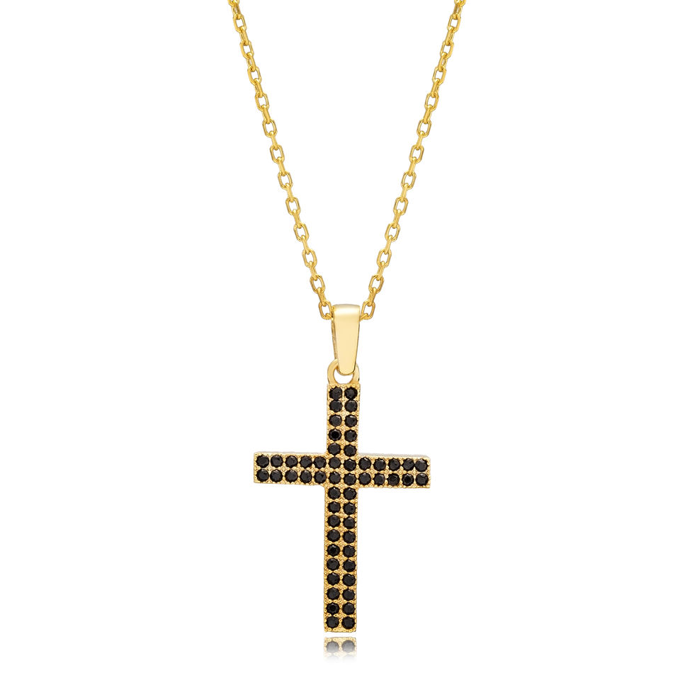 Black Zircon Cross Design Charm Necklace Pendant 925 Sterling Silver Wedding Gift Turkish Fine Jewelry