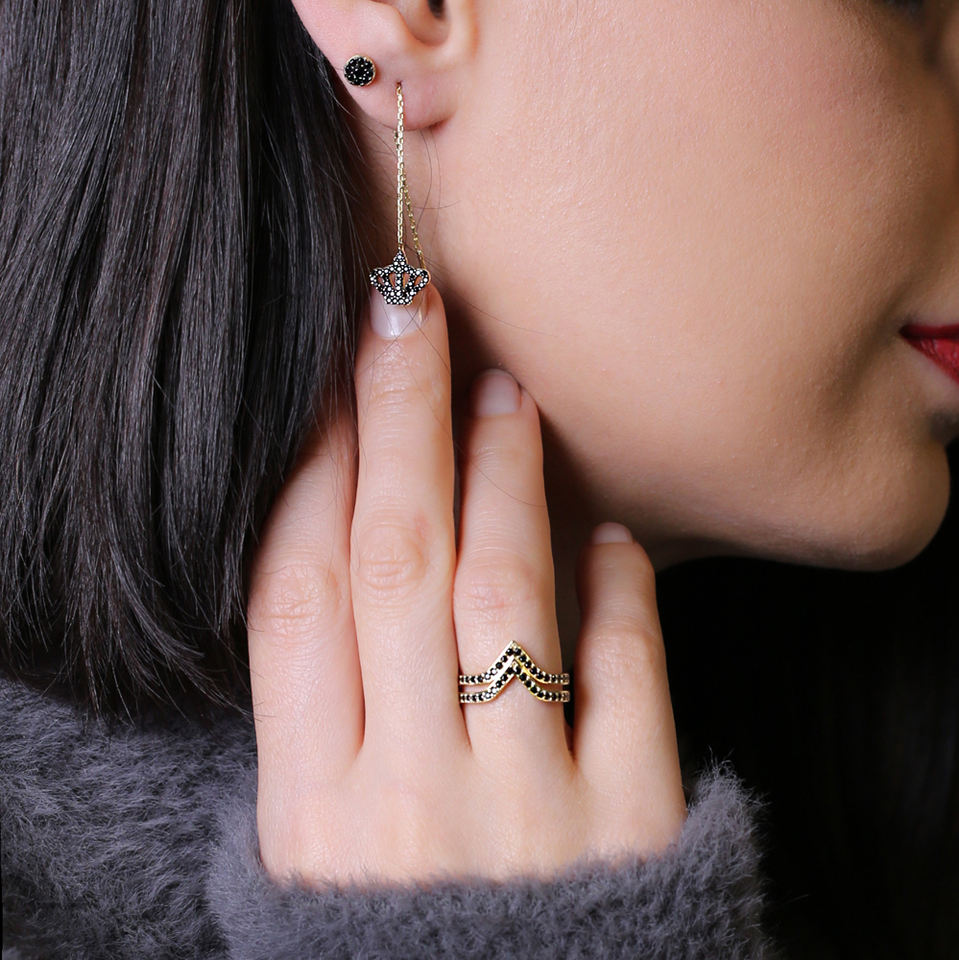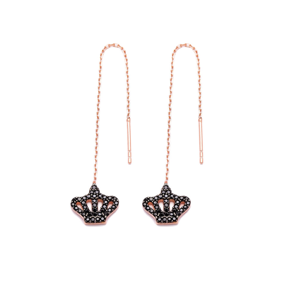 Black Zircon Threader Crown Charm Earring Wholesale 925 Sterling Silver Jewelry