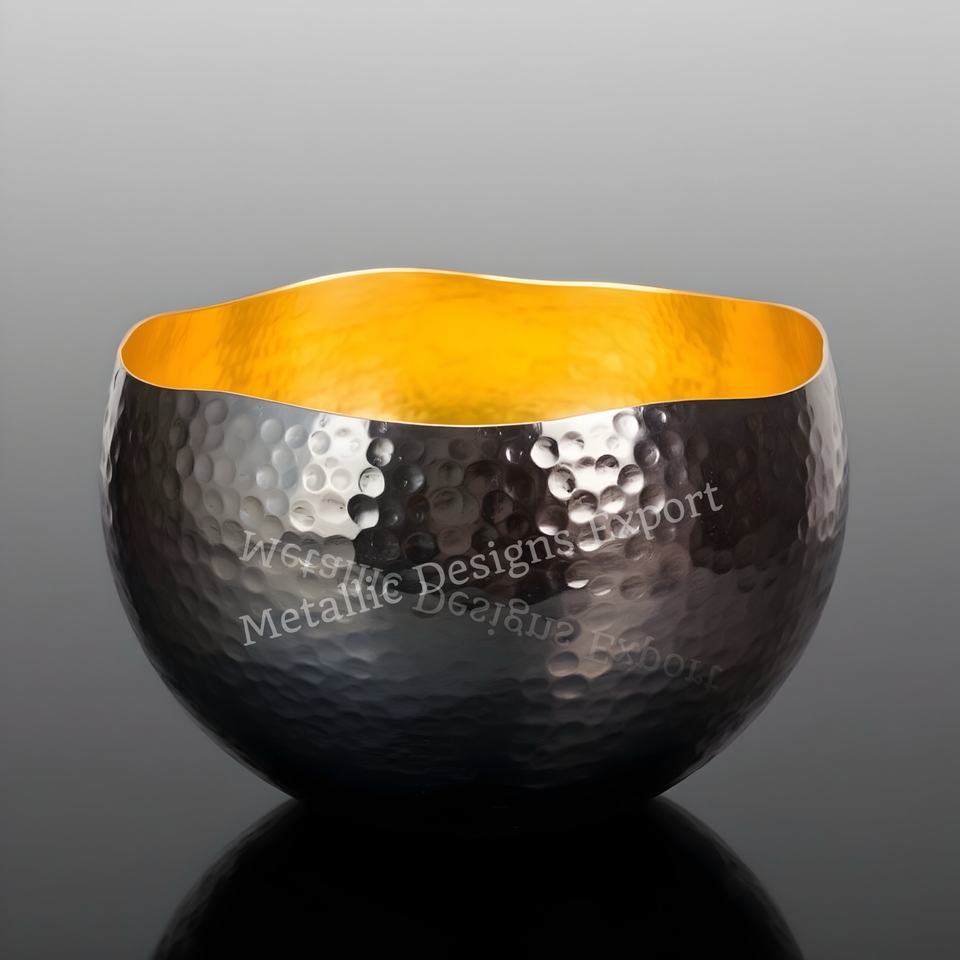 Black and Gold Hammered Metal Votive Unique Candle Jar Holder Ripple Design for Unique Modern Homes, Wedding Gifts, or Events