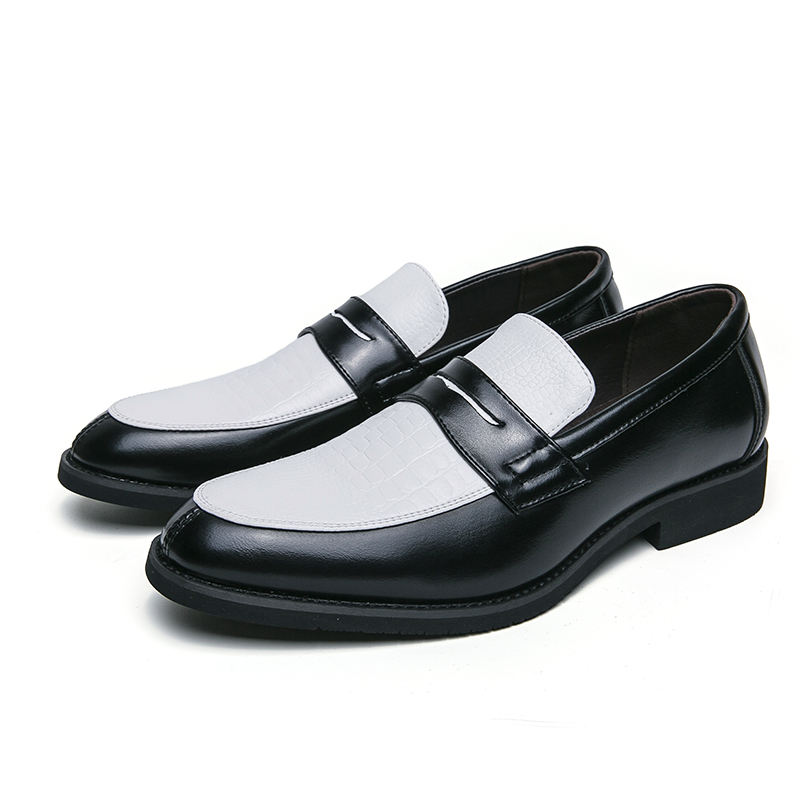 Black and White Color-blocked Shoes, Men's Slip-on Loafers, British Business Casual Men's Shoes
