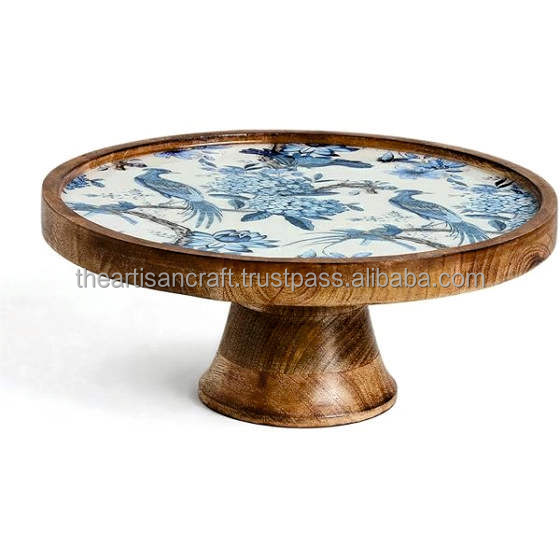 Black and White Enamel Print Wood Cake Stand with Serving Tong Elegant Dessert Presentation for Ramadan Wedding Diwali