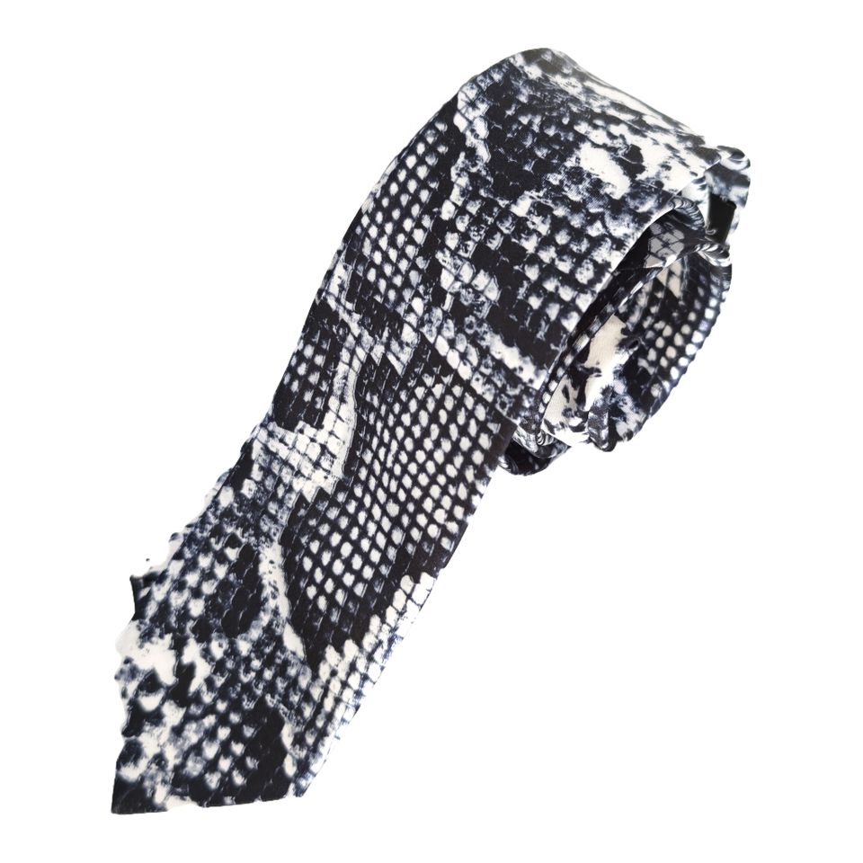 Black and White Snakeskin Printed Slim Fashion Tie