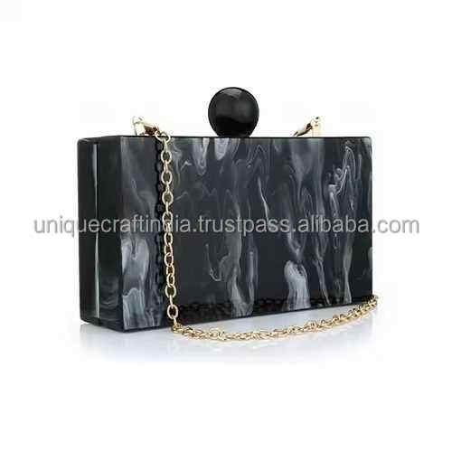 Black and White Splash Resin Clutch | Stylish Party Wear Handbag for Women and Girls | Unique Crafts India