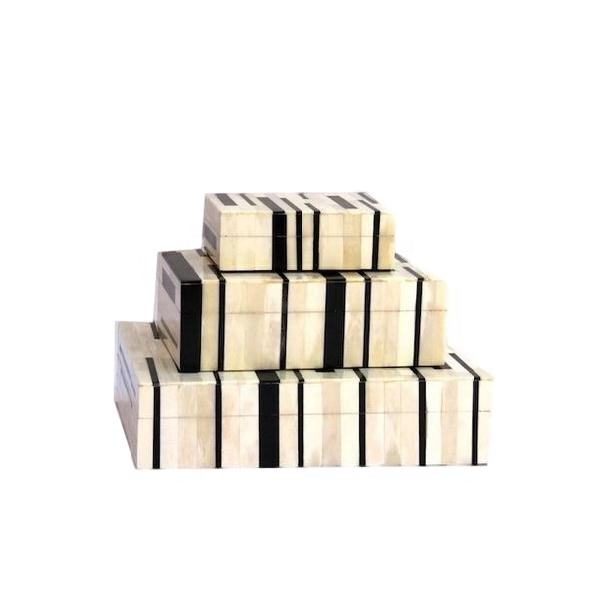 Black and White Thick Line Pattern Bone Jewelry Box Organizer Customizable Sizes and Colors for Women and Girls Novelty Gift