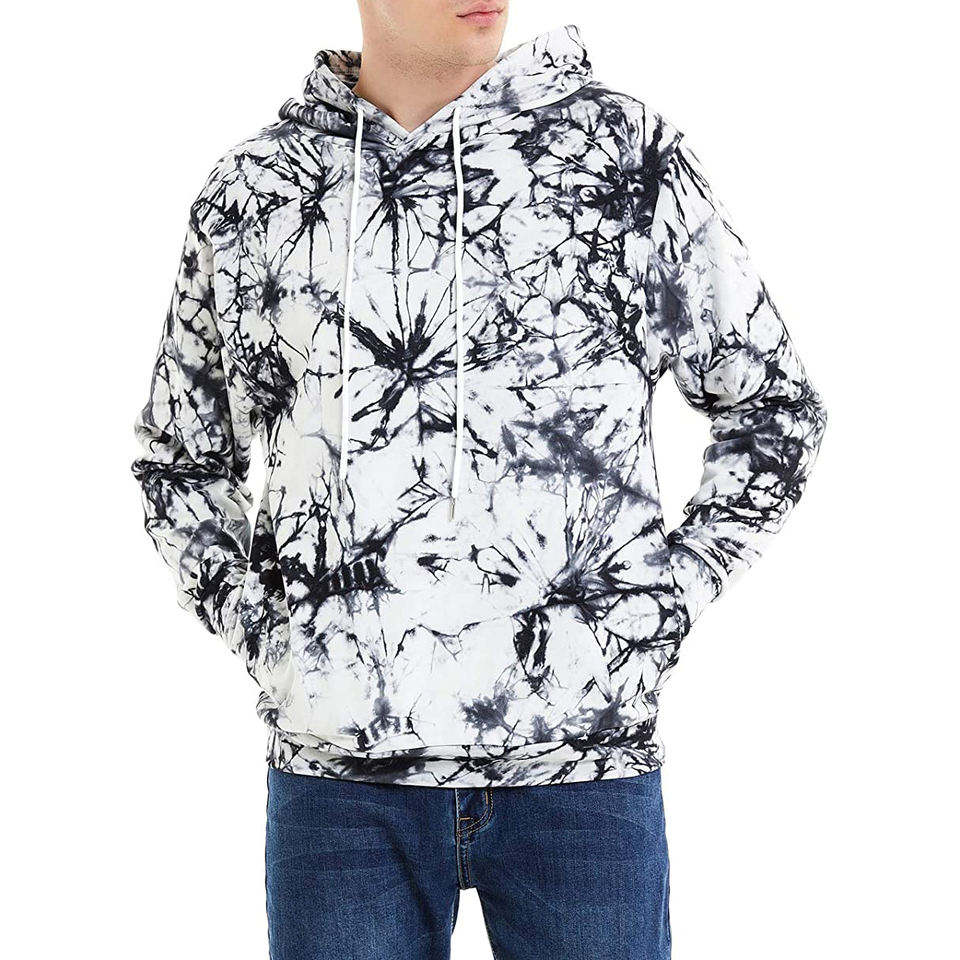 Black and White Tie Dye Hoodie Men Women Unisex Casual Pullover Long Sleeve Fleece Streetwear Top
