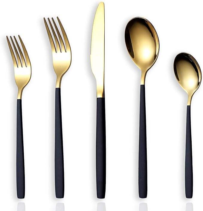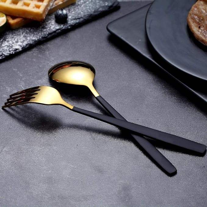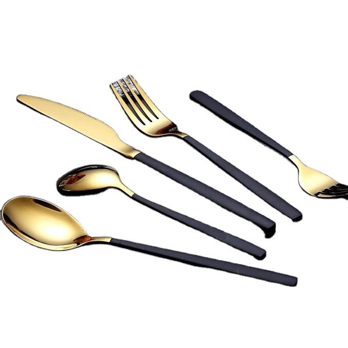 Black and gold Polished Metal Flatware Set Wholesale Manufacturer Tableware Decorative Metal Cutlery Set Supplier in Bulk