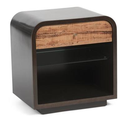 Black and natural wood color combination Flatted Design round Edge Bedside Bedroom Furniture