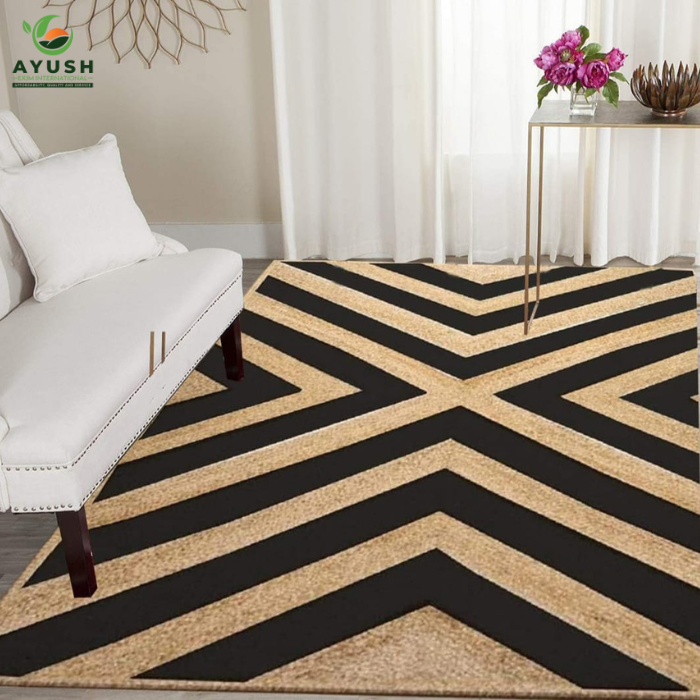 Black and white rug made of 100% jute fibers handmade with custom settings carpets for home decoration