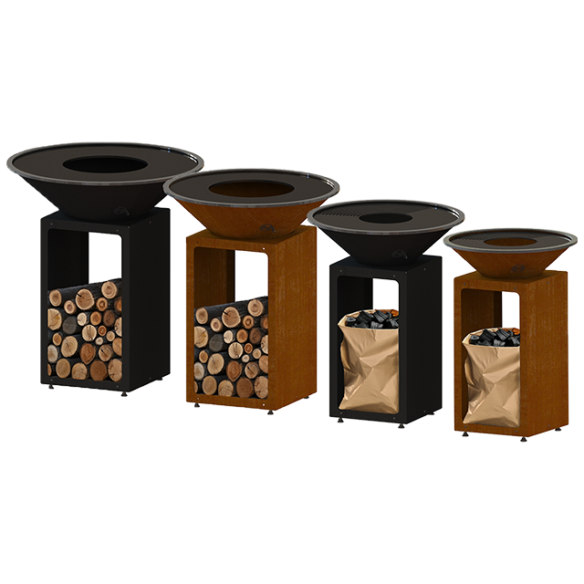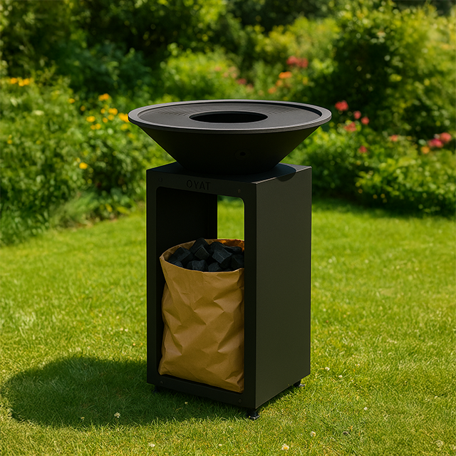 Black cooking fire pit 58, powder-coated steel, designer outdoor brazier, barbecue
