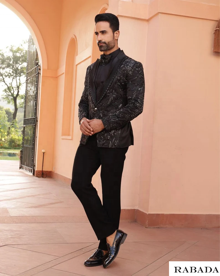 Black Designer Hand Embroidered Tuxedo, Traditional Groom Black Jodhpuri Jacket, Wedding Jodhpuri Indian Jacket, Men Suit
